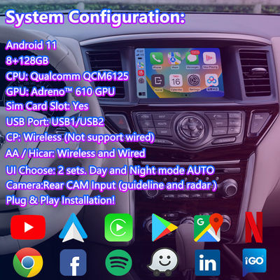 ওয়্যারলেস কারপ্লে অ্যান্ড্রয়েড অটো সহ নিসান প্যাথফাইন্ডার আর৫২ এর জন্য এলসেল্ট অ্যান্ড্রয়েড ভিডিও ইন্টারফেস